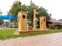 · Robinienpodest mit 2 Zapfsäulen und Zapfhähnen